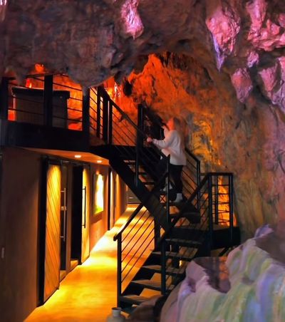 The Cave includes 4-beds, 4-baths, for 8 guests in luxury cave glamping: